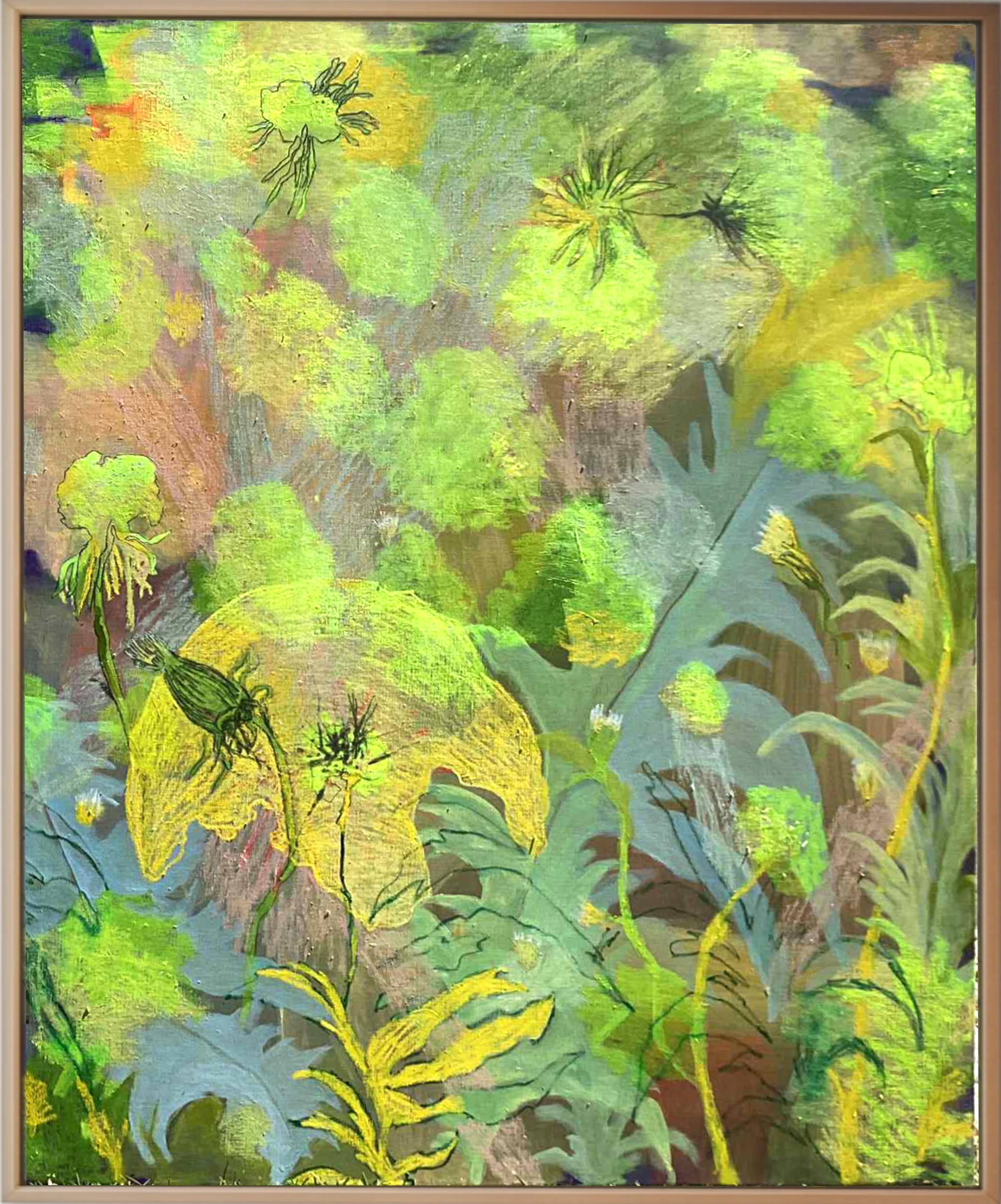 The canvas in this picture is a work in progress themed on a rainy day with Dandelions.