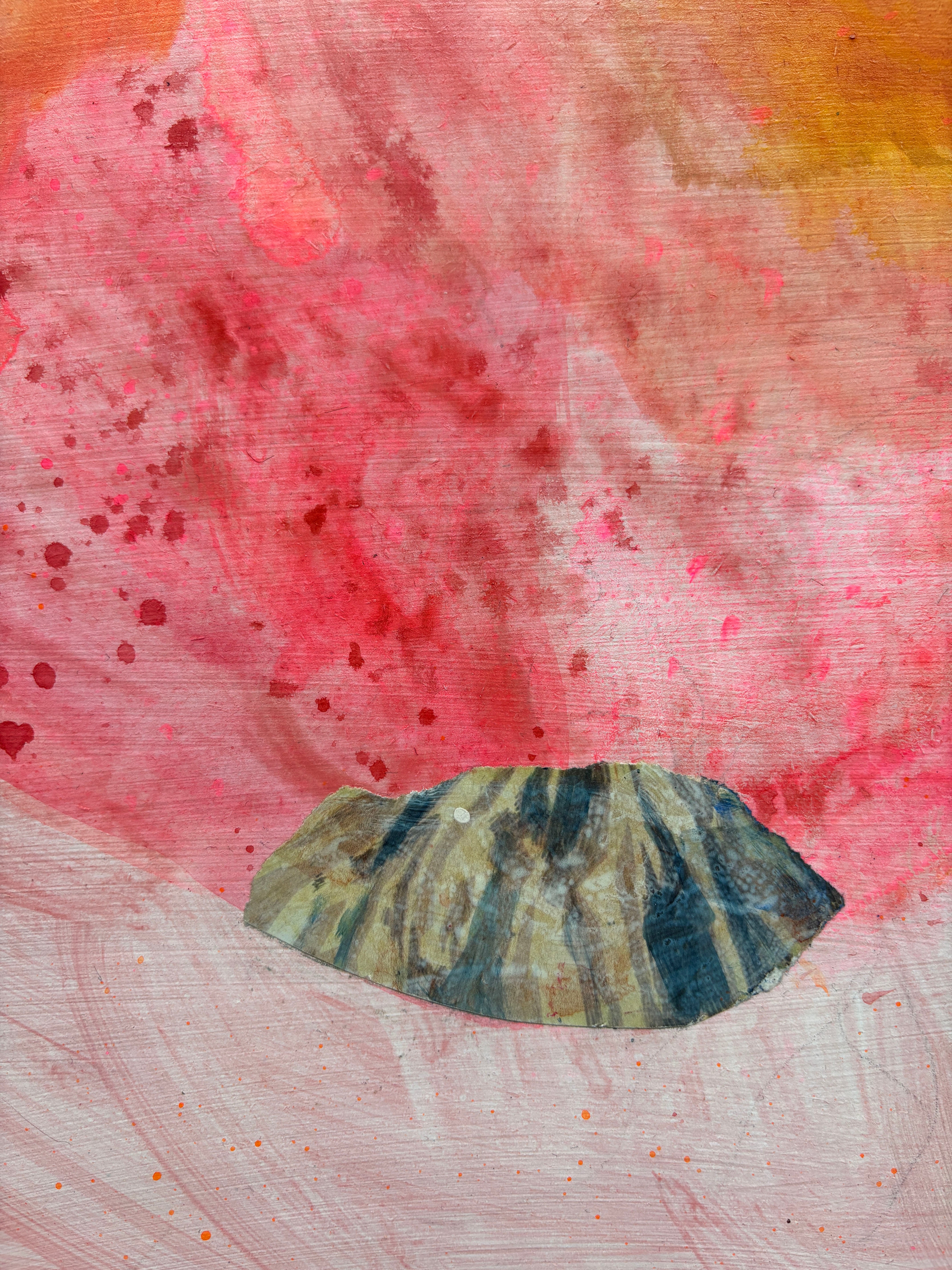 Informed by shapes and motifs of the natural environment and patterns of decay and regrowth, her intimate works draw the viewer into quiet contemplation and an unspoken dialogue with the details of the other-than-human world as well as with our own inward geography. Visual symbols, as well as personal and collective metaphors inform her creative process- juxtaposing her internal world with the exterior landscape.
