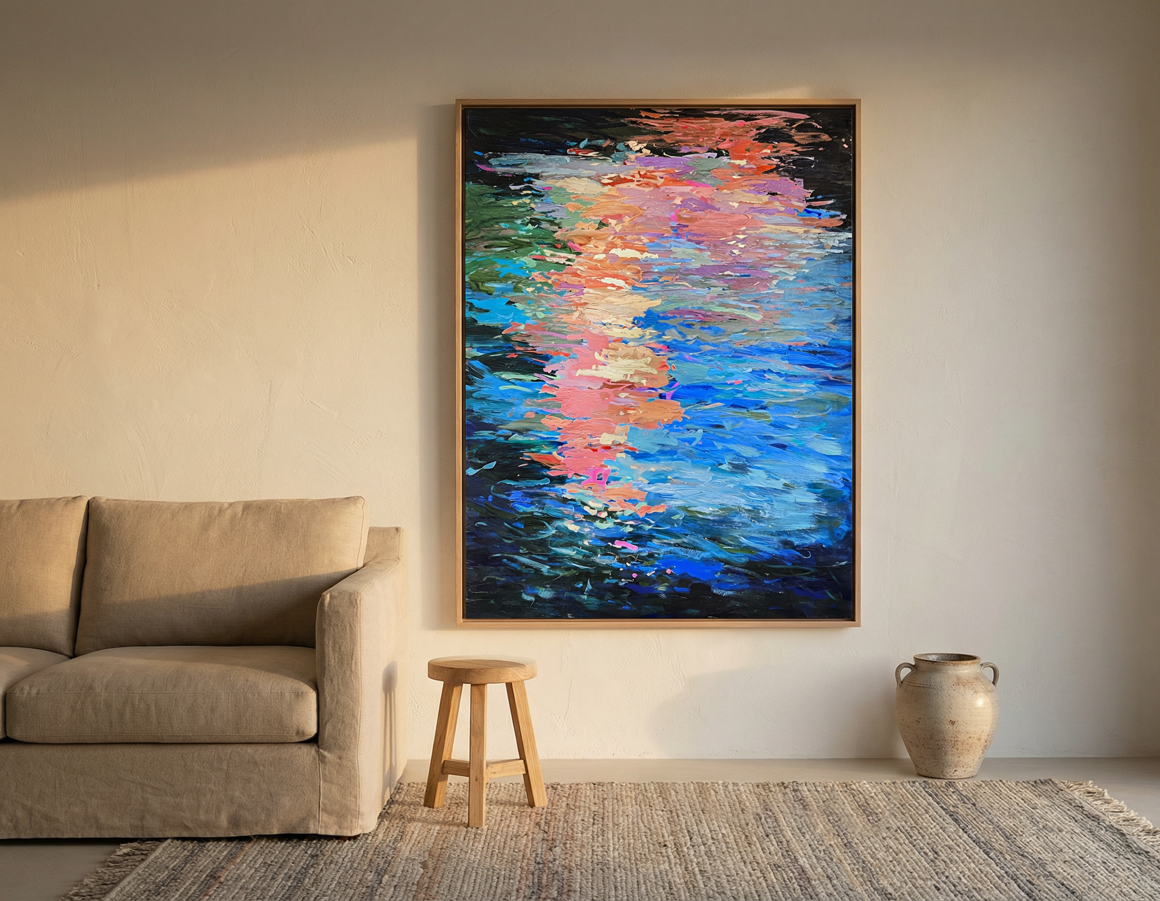 Acrylic on cotton canvas, float framed in raw oak.