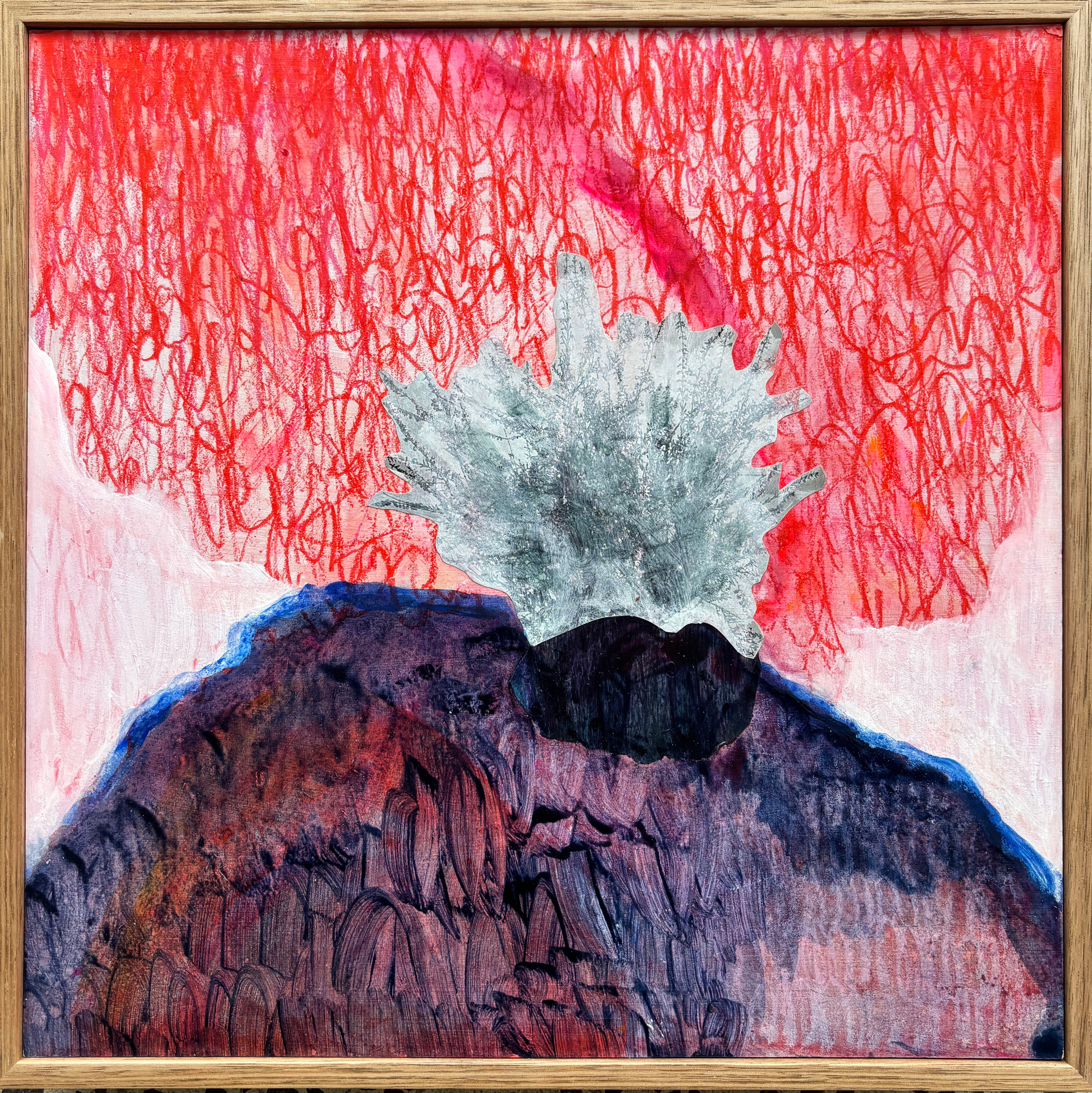 Acrylic on canvas, box framed in raw oak.