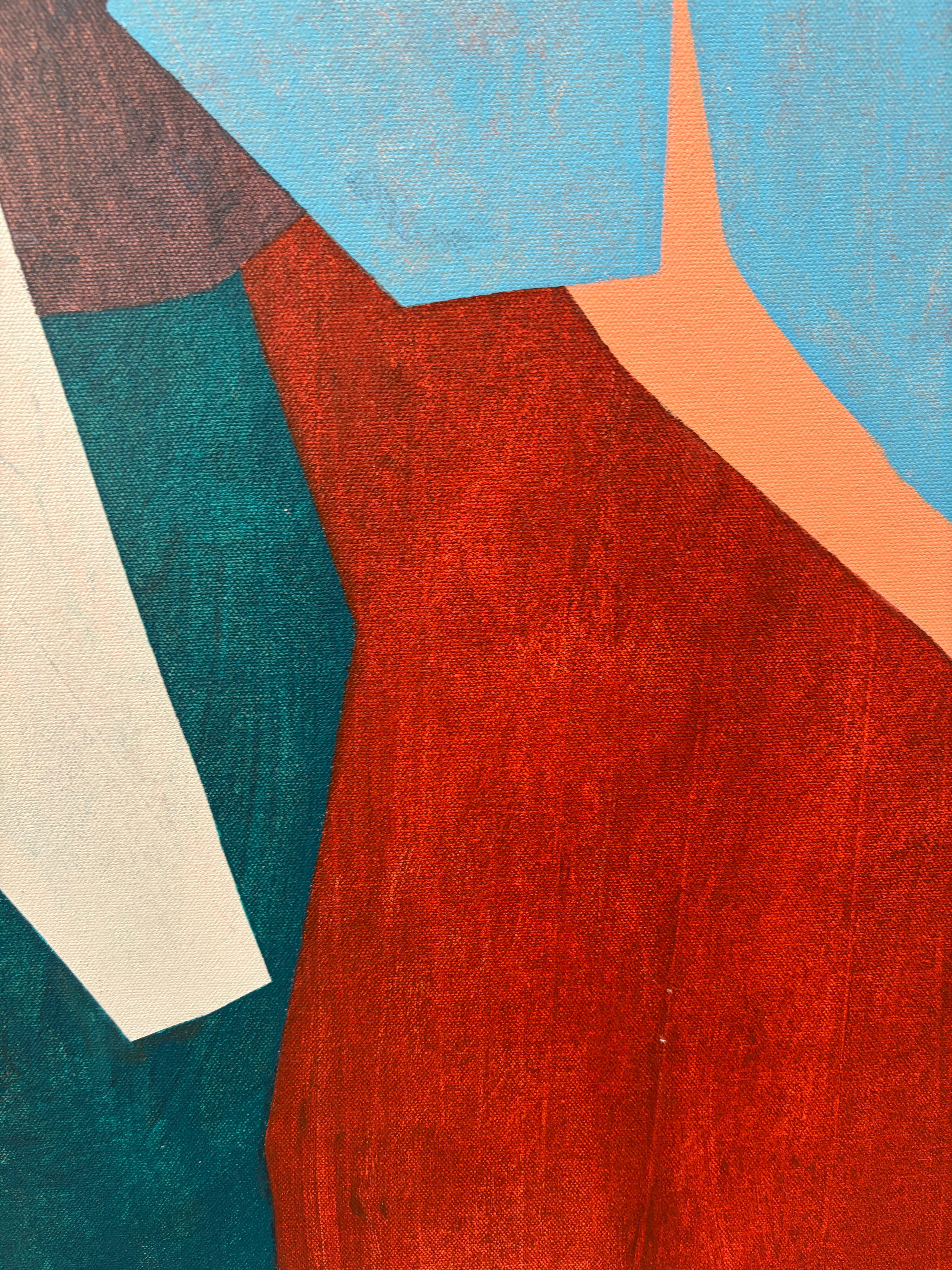 Her work now celebrates the richness of lived experience. Through bold forms, confident figures, layered textures and vibrant colour, she explores themes of connection, identity, joy, and the beauty found in everyday moments. Each piece is ultimately a reflection of love, diversity, togetherness and resilience.