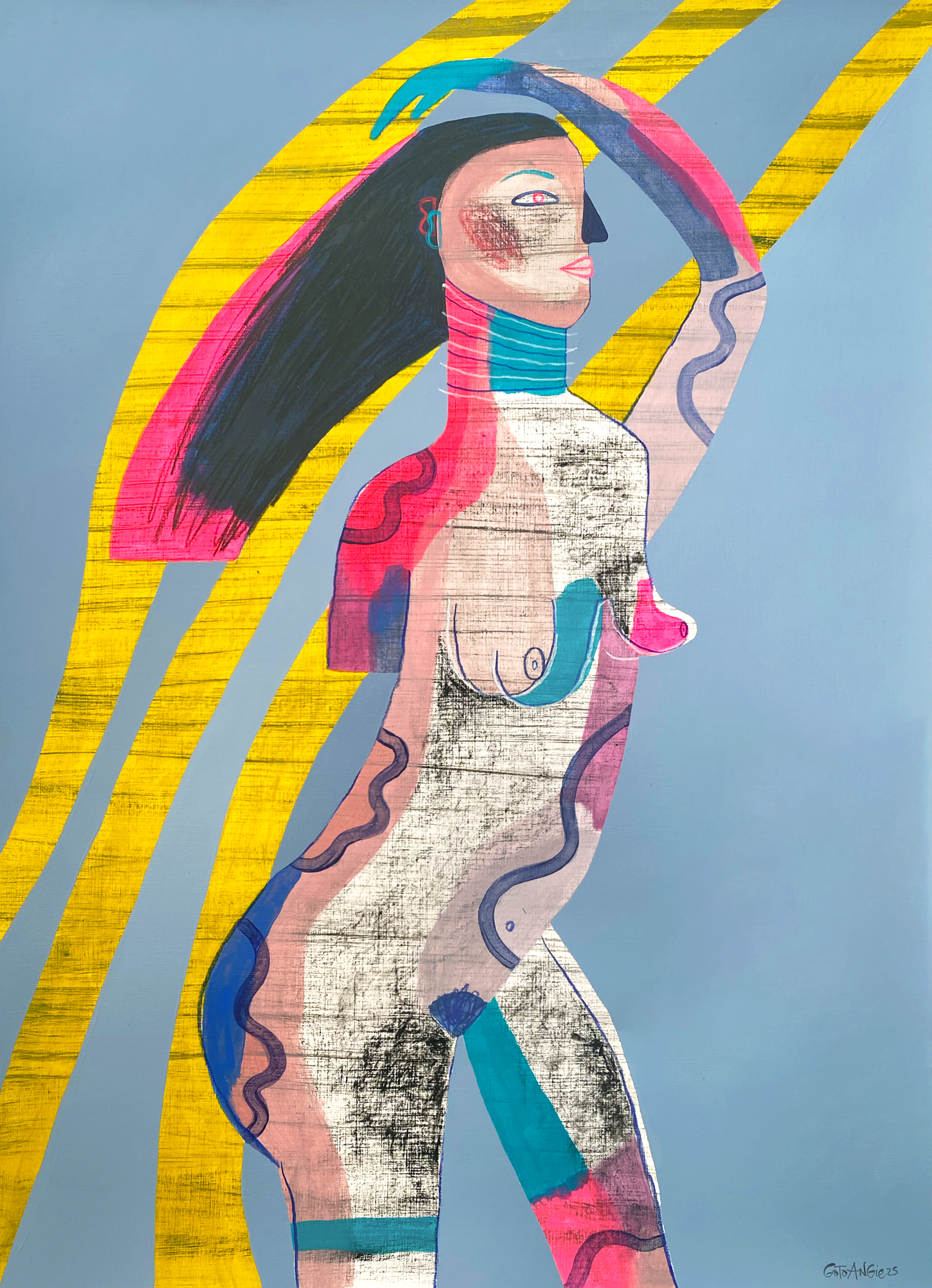 Mixed media (Acrylic and oil pastels) on A2 canvas paper.
