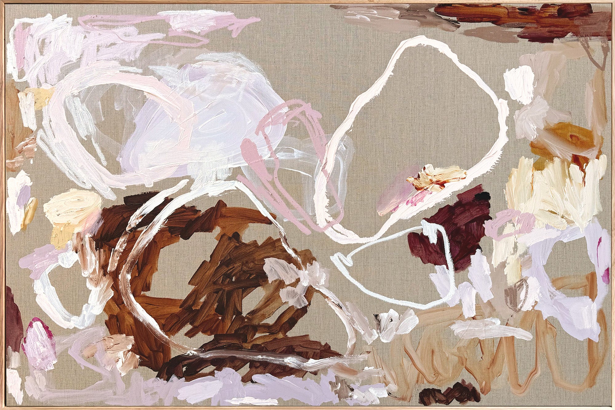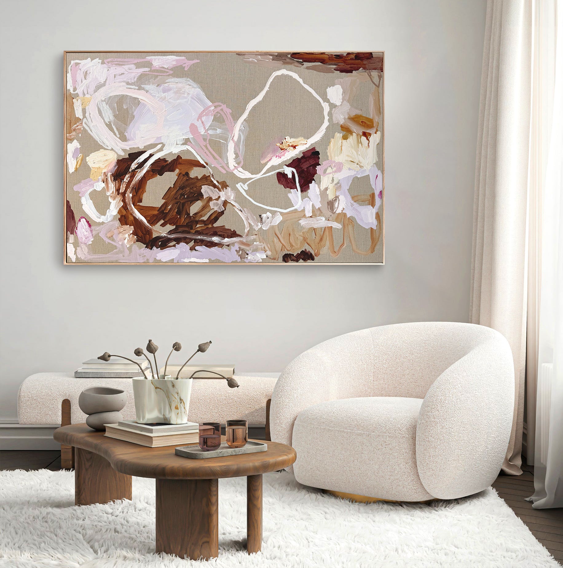 Where We Belong brings together grounding neutrals and fluid movement in a way that feels calm, connected, and quietly expressive. Painted on raw natural linen, this original abstract artwork focuses on shape, texture, and tone to create a layered sense of depth and stillness.