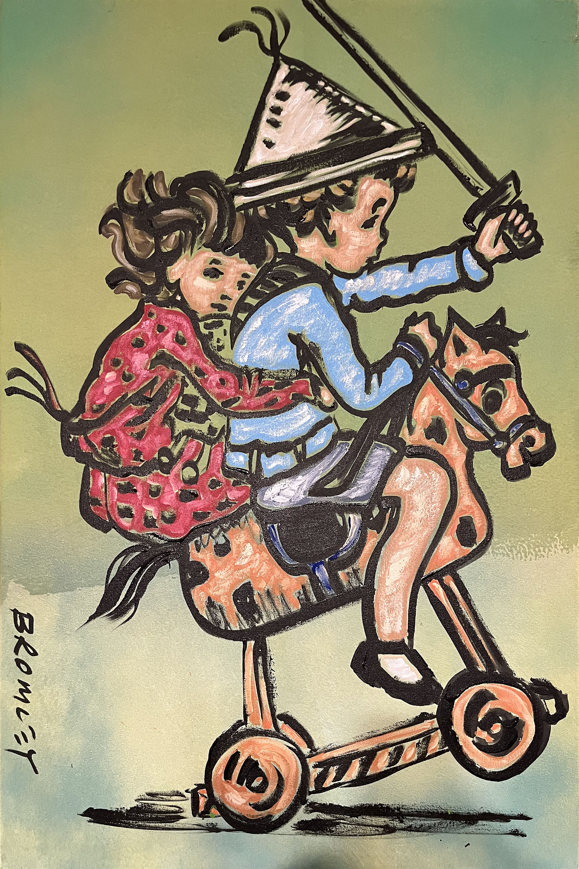 Bromley's inspiration is taken from childhood books, popular culture and artists such as Andy Warhol, Roy Lichtenstein, and Glen Baxter, and his works typically take on a graphic, colourful feel.
