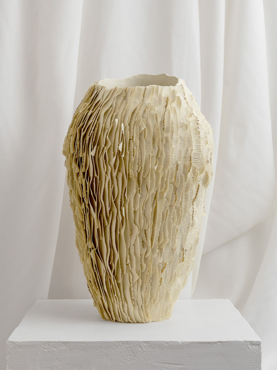 Constructed using a coil technique, this vase is built inch by inch and fired multiple times.