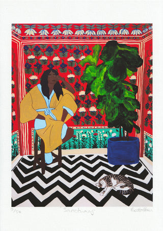 Em’s art practice came out of a need to create a space of psychological safety, joy and comfort in her own life, and in her work she tries to create for collectors what she struggles to give herself - calm, safety, rest and a safe space for anger and power.