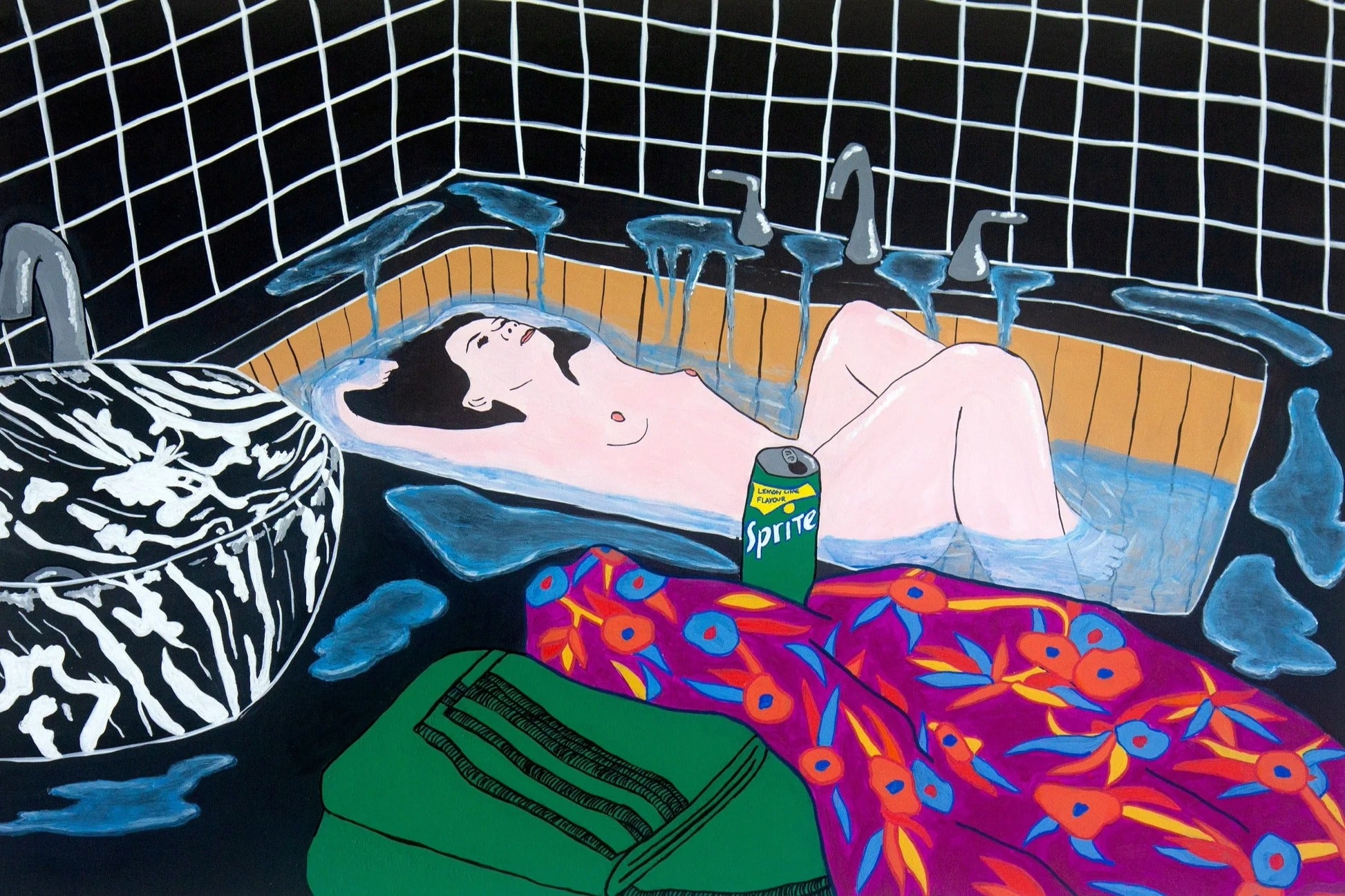 After a rough day, she sinks into the tub and the worries on her mind melt away.