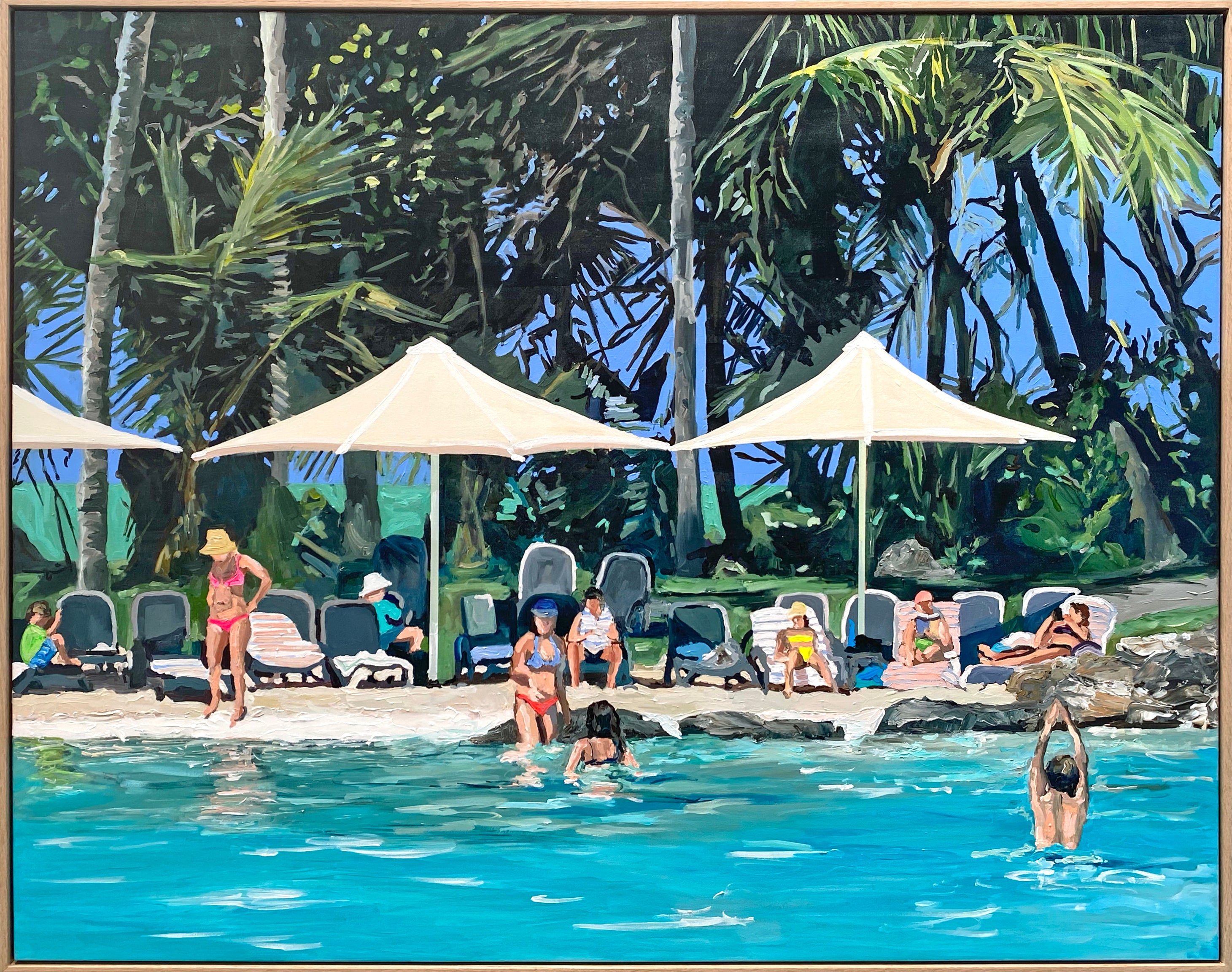 Acrylic on canvas, box framed in raw oak.