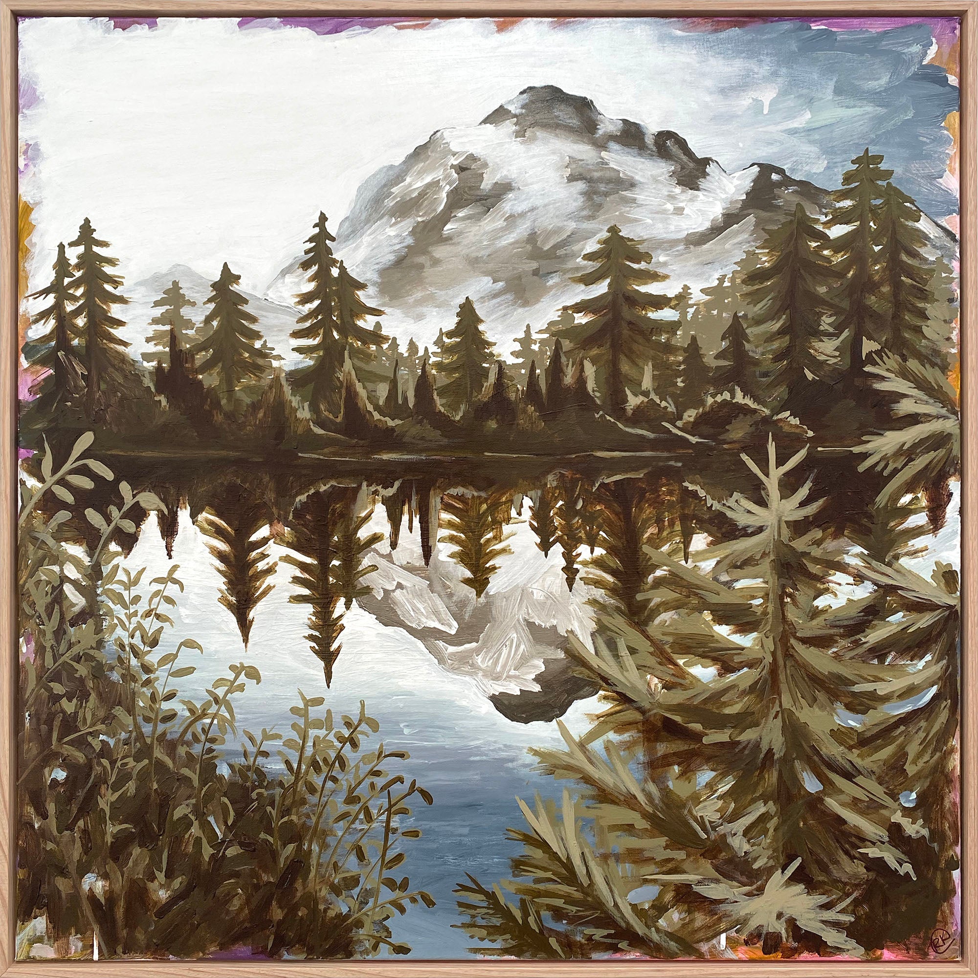 Acrylic on canvas, box framed in raw oak.