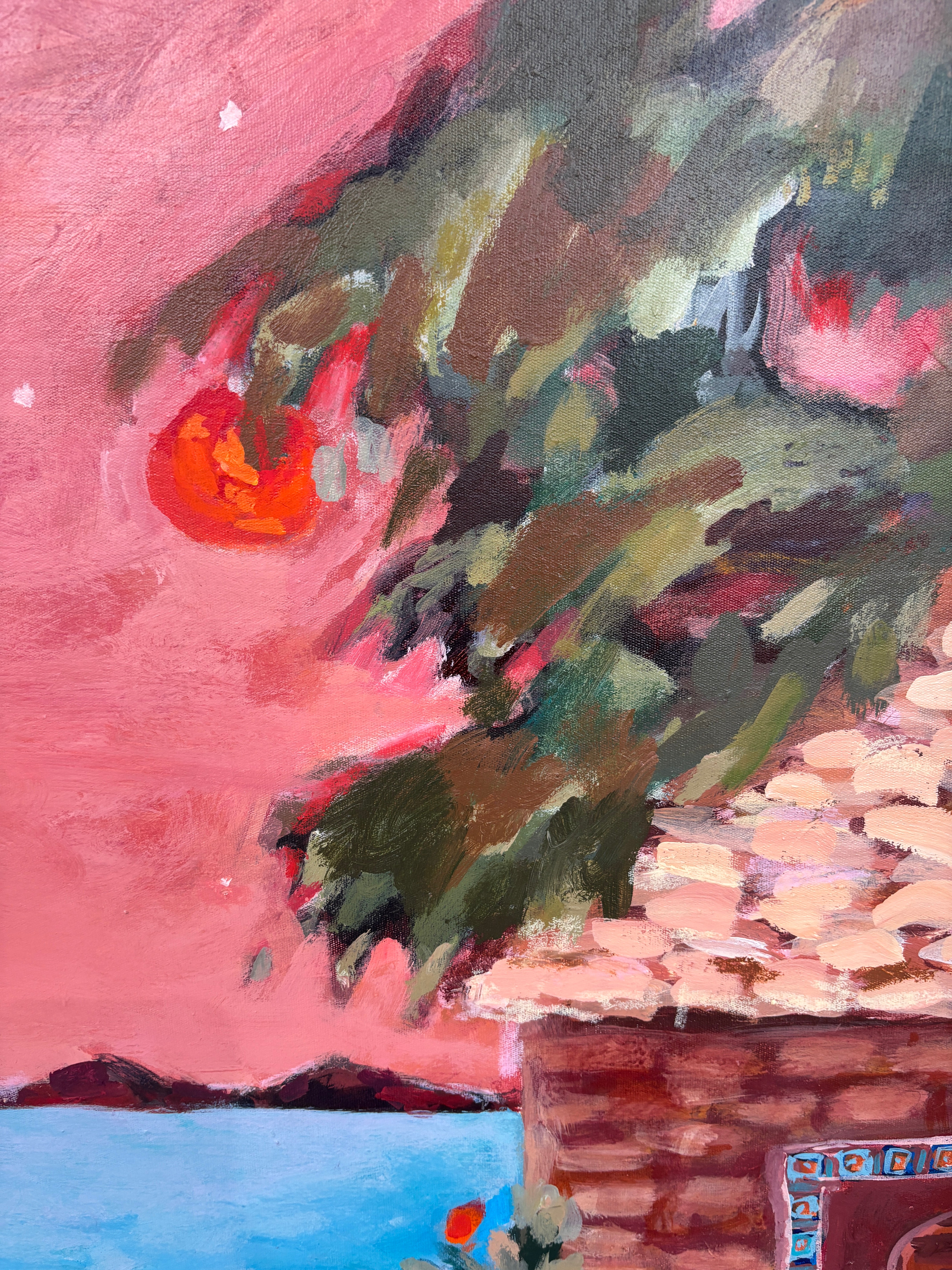 Her work is particularly drawn to life’s soft in-between moments — the warmth of a summer afternoon, the hush of early morning light, the way memory gently reshapes a place or feeling over time. These fragments often become the starting point for her work. With acrylics and oil sticks, Stephanie builds layered, expressive paintings filled with pattern, movement, and depth, all of which inspired by the natural landscapes of Australia — especially Western Australia’s wild beauty — and from a love of travel and connection.