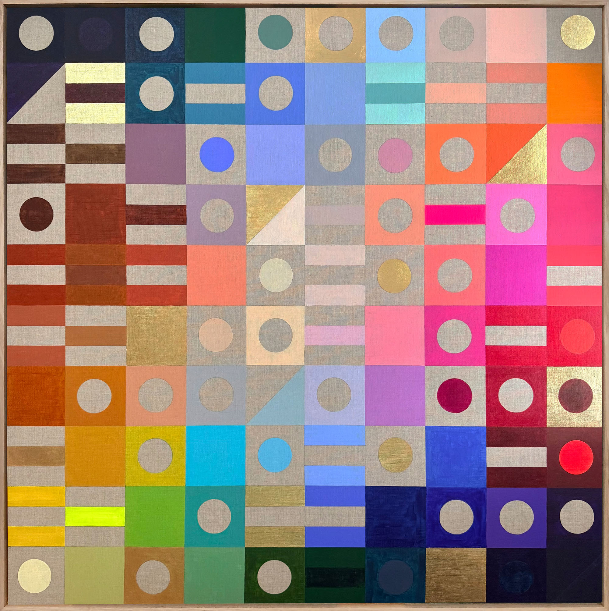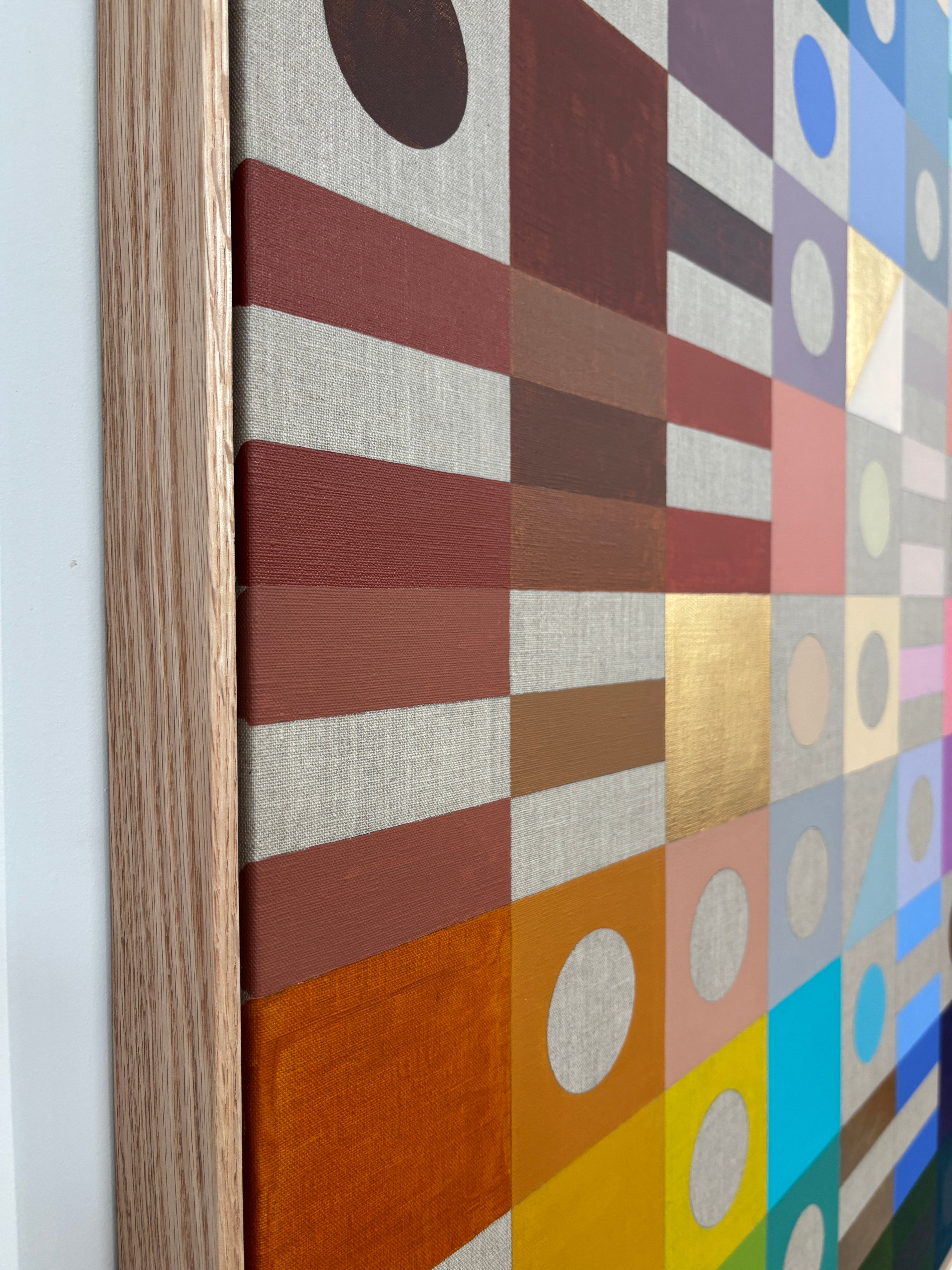 Acrylic and gold leaf on linen, framed in Tasmanian Oak.