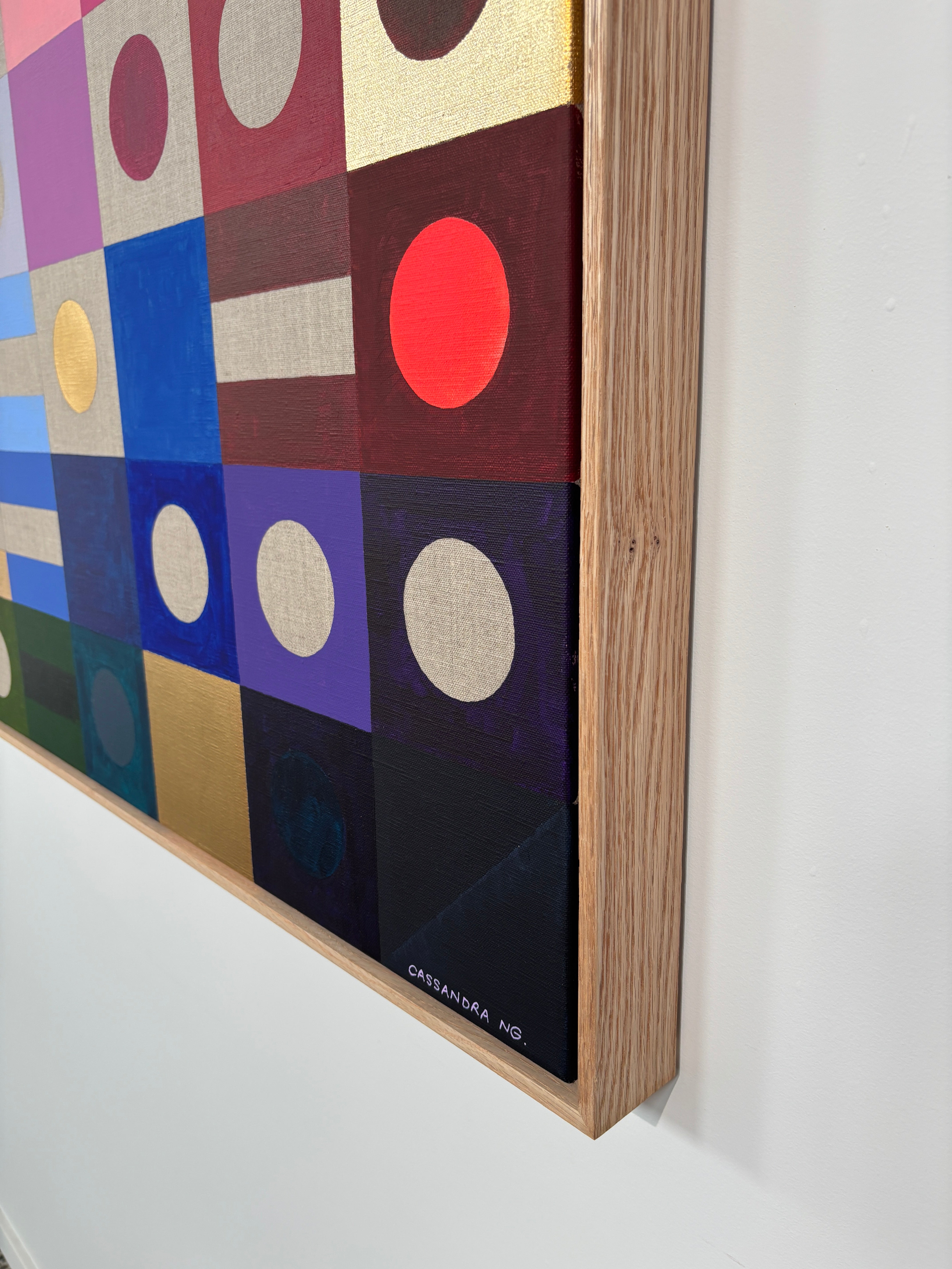 Cassandra Ng ist eine zeitgenössische Künstlerin aus Sydney. Ihr aktuelles Werk beschäftigt sich mit der Idee der Synästhesie, bei der manche Menschen beim Hören von Musik Farben und Formen sehen. Inspiriert von der geometrischen Abstraktion kreiert Cassandra Bilder in Morsezeichen, die die Liedtexte eintippen und sie mit sorgfältig gemischten Paletten kombinieren, um Werke mit Bedeutung und Bewegung zu schaffen.