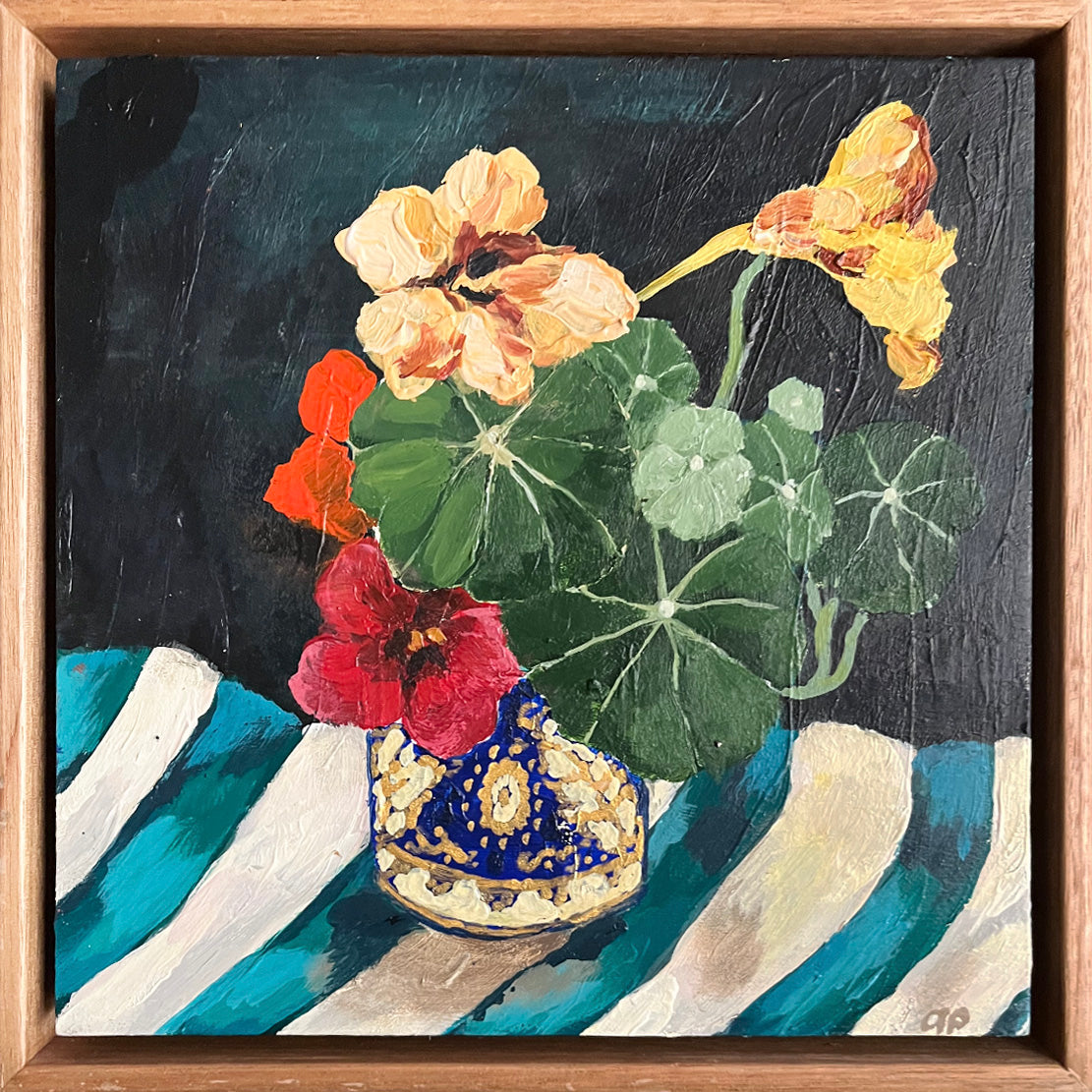 Acrylic and impasto on wooden birch board, raw frame