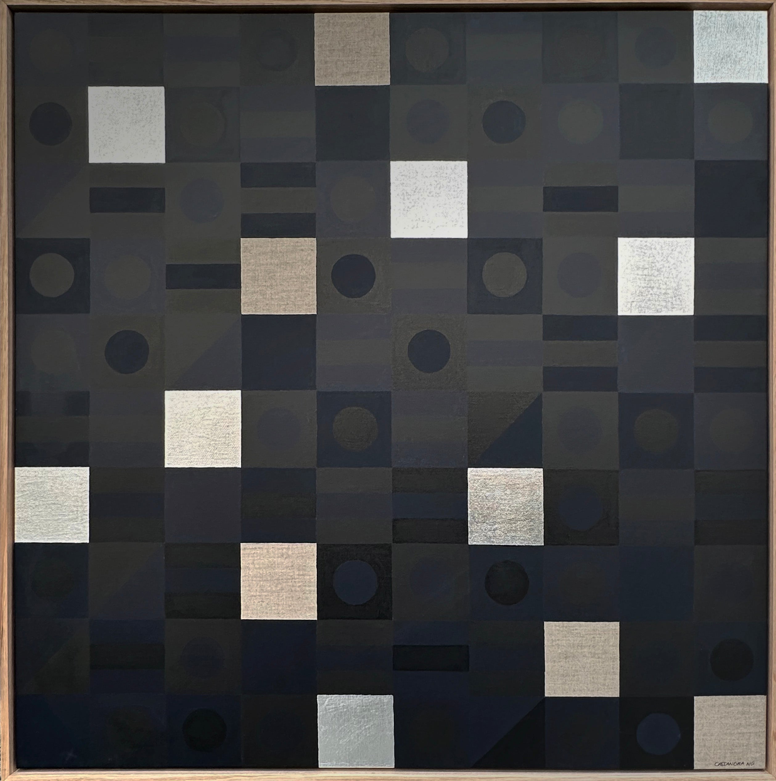 Cassandra Ng is a contemporary Sydney based artist. Her current body of work explores the idea of Synaesthesia, where some people who hear music see colour and form. Being inspired by geometric abstraction, Cassandra creates paintings in morse code that tap out the lyrics to songs and combines them with thoughtfully mixed palettes to make works that have meaning and movement.