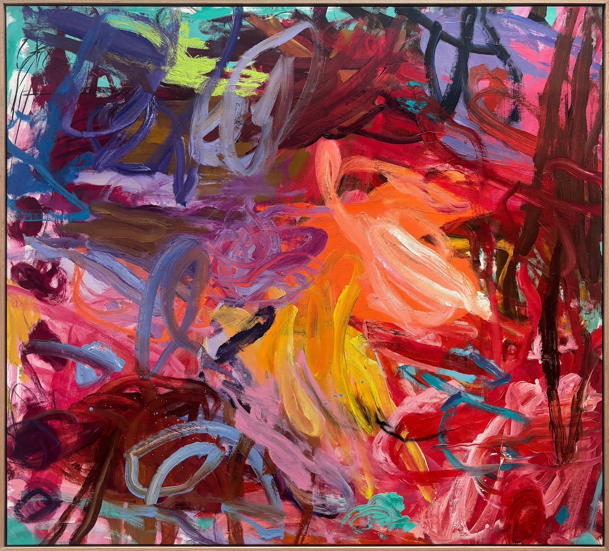 Oil on canvas, box framed in raw oak.