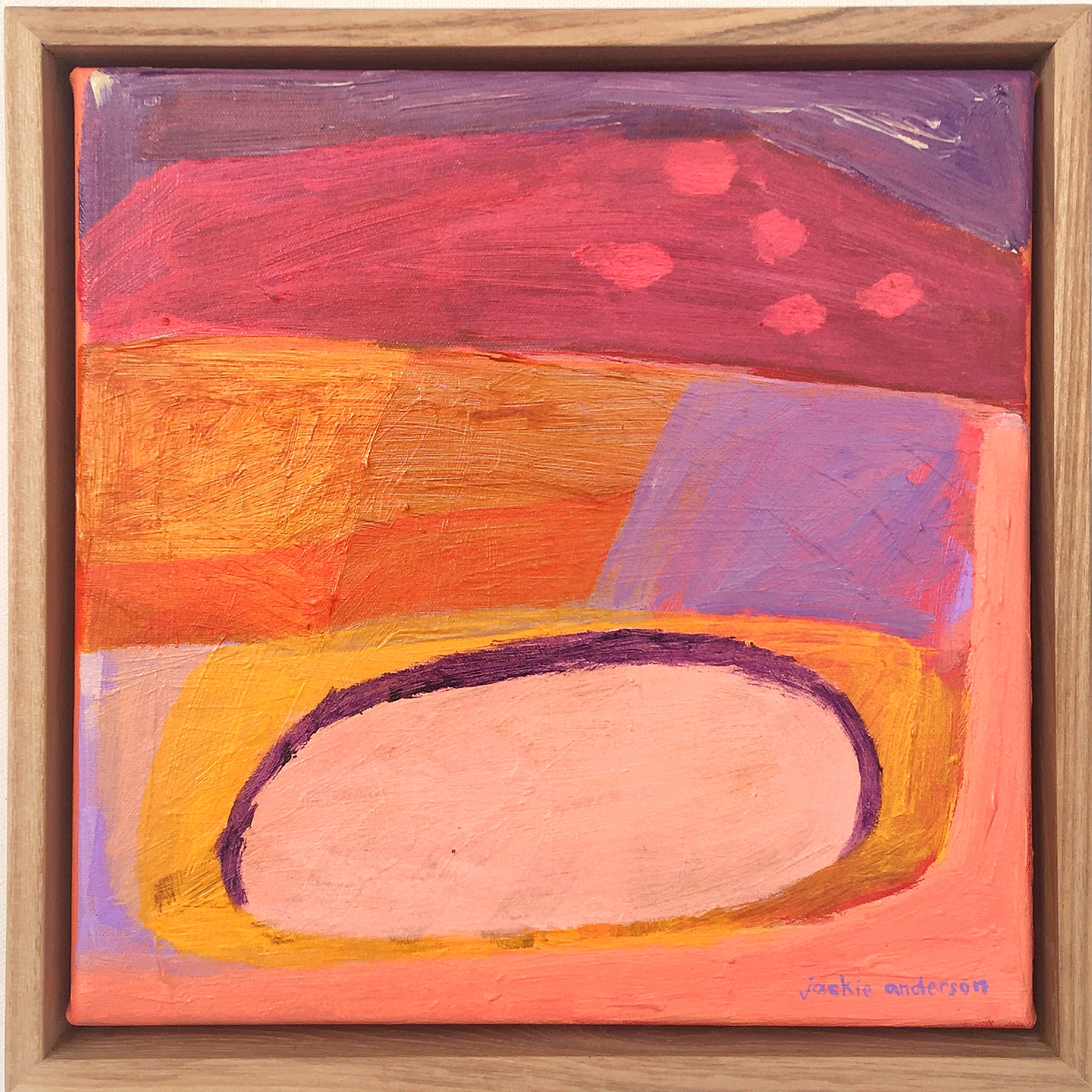 Acrylic on canvas, box framed in raw oak.