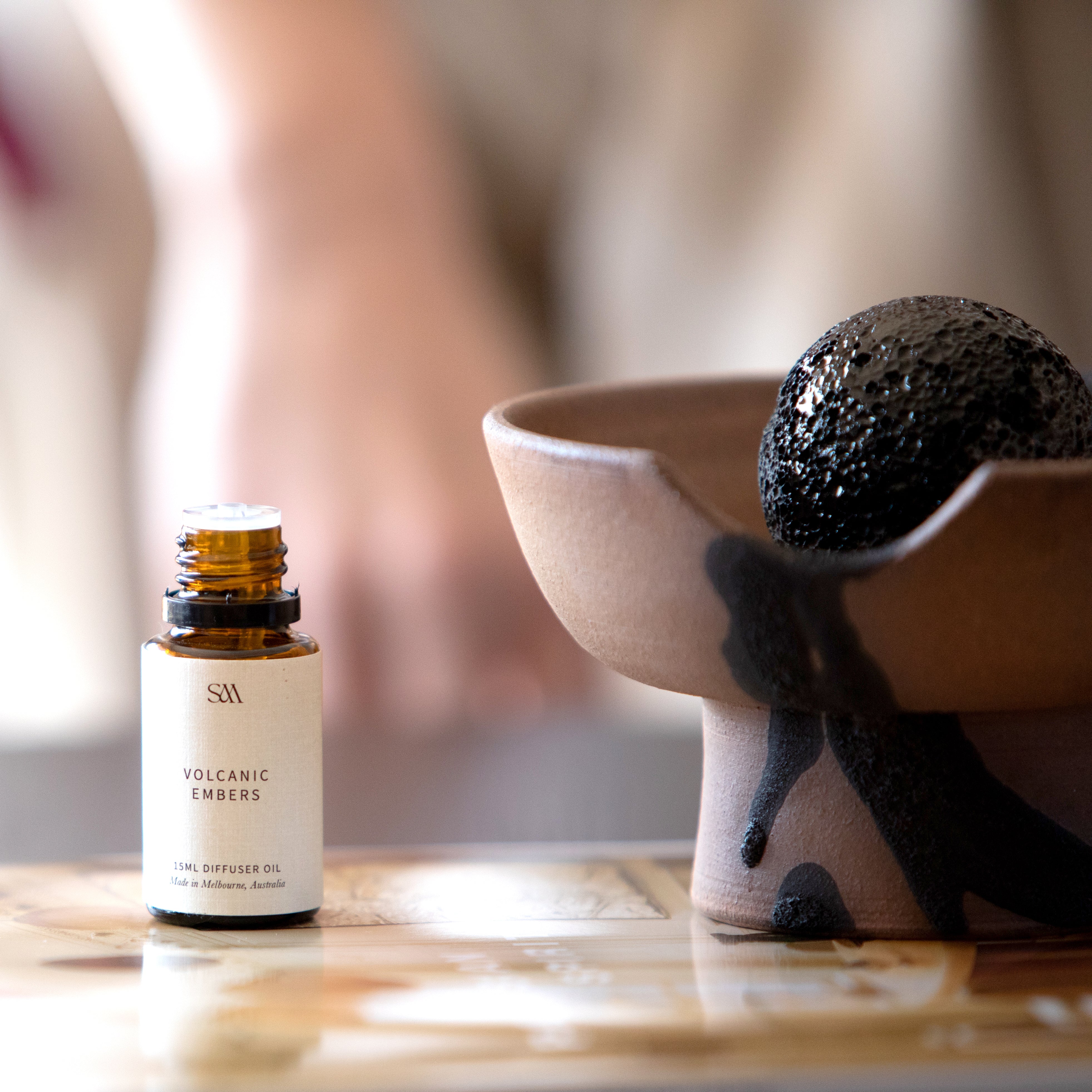 Lahar Scented Diffuser combines the textural beauty of volcanic rock with a handcrafted ceramic tray, meticulously made in Melbourne. The scent opens with vibrant Italian bergamot and cracked black pepper before unfolding into a heart of black orchid, jasmine, and spiced plum. It settles into a warm, smoky base of patchouli, vanilla, and amber — alluring, dramatic, and beautifully complex.