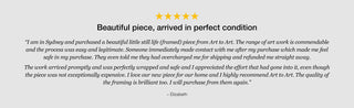 We use a variety of trusted shipping partners to ensure you get the best value. Artworks are dispatched within 1 – 5 business days of order or as otherwise agreed. Delivery times vary depending on destination, but are typically within 3 – 10 business days within Australia.