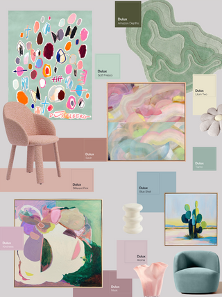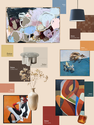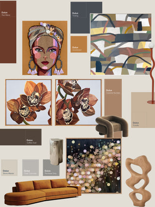 It's a good idea to ask a professional to help bring your interior elements together. We asked Melbourne Interior Designers Marly Hemisphere to create this mood board to give you an idea what they can do for you. Find an artwork you love and ask theme to build a story around it. www.marlyhemisphere.com.au