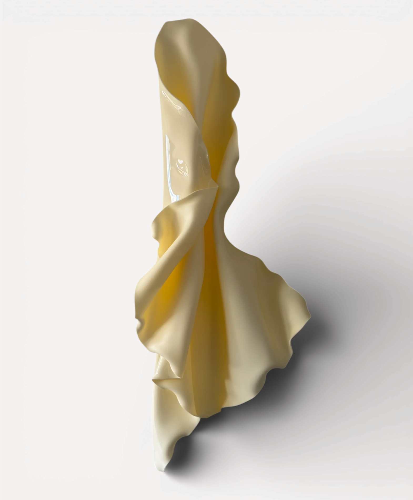 Her work explores movement, emotion, and the balance between softness and structure through sculptural form.