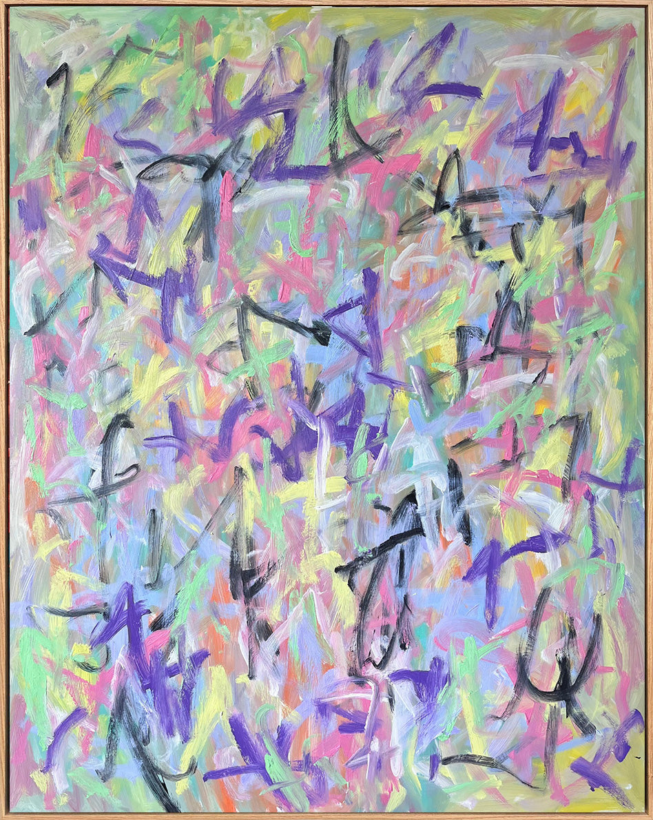 Relishing the challenge of abstract art, Ben creates colourful, multi-layered, textured oil paintings through bold colourisation and gestural brushstrokes. He paints ‘Alla prima’ with a dynamic yet deliberate application, and Randall’s colours are often mixed in bowls with solvent and linseed oil, allowing for fast application and for the colours to interweave on the canvas.