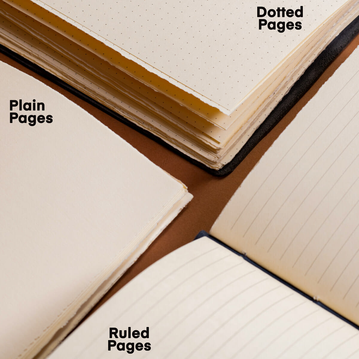 224 hand-torn pages, 100gsm corona cream quality paper.