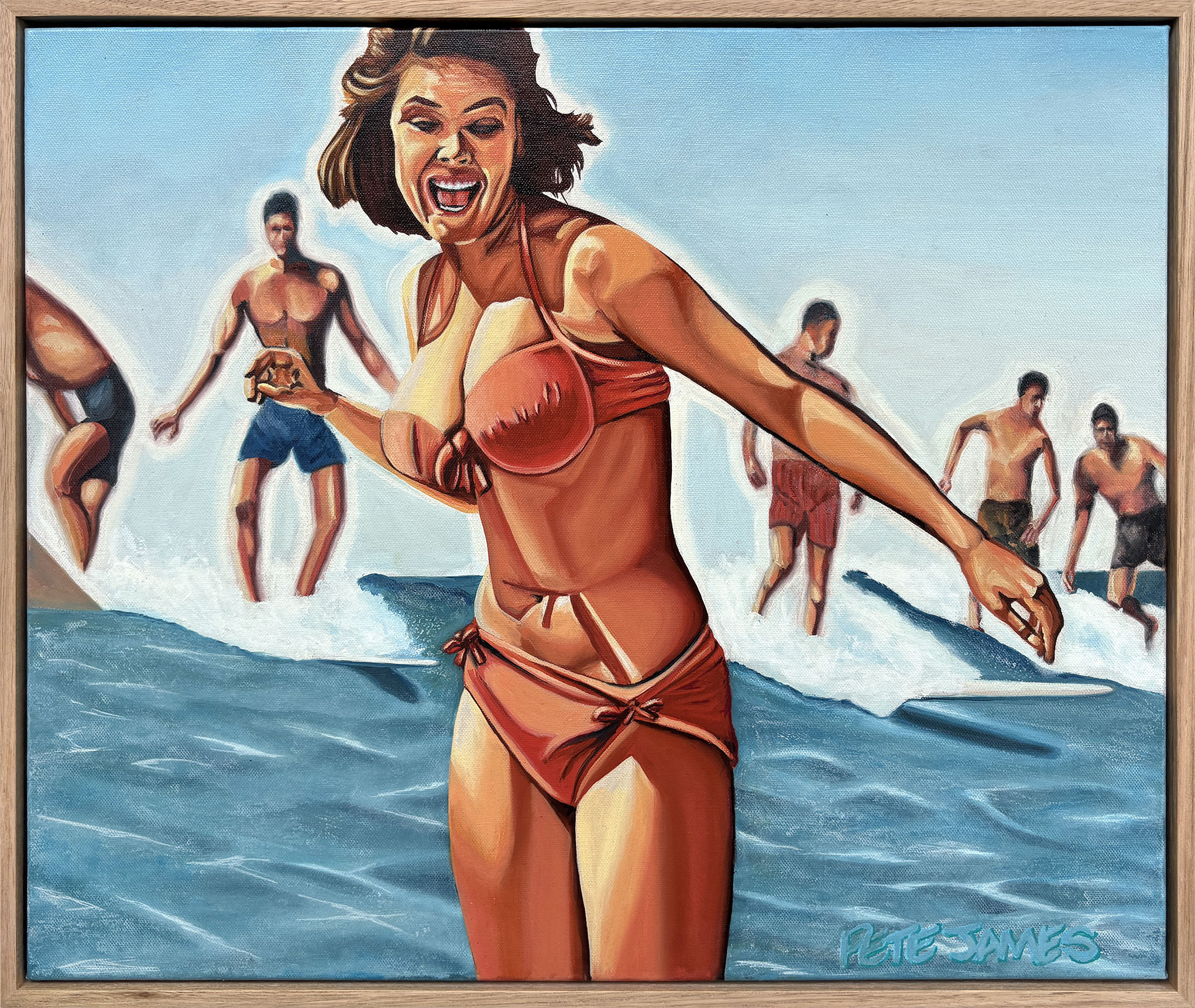 Oil on canvas, box framed in raw timber.