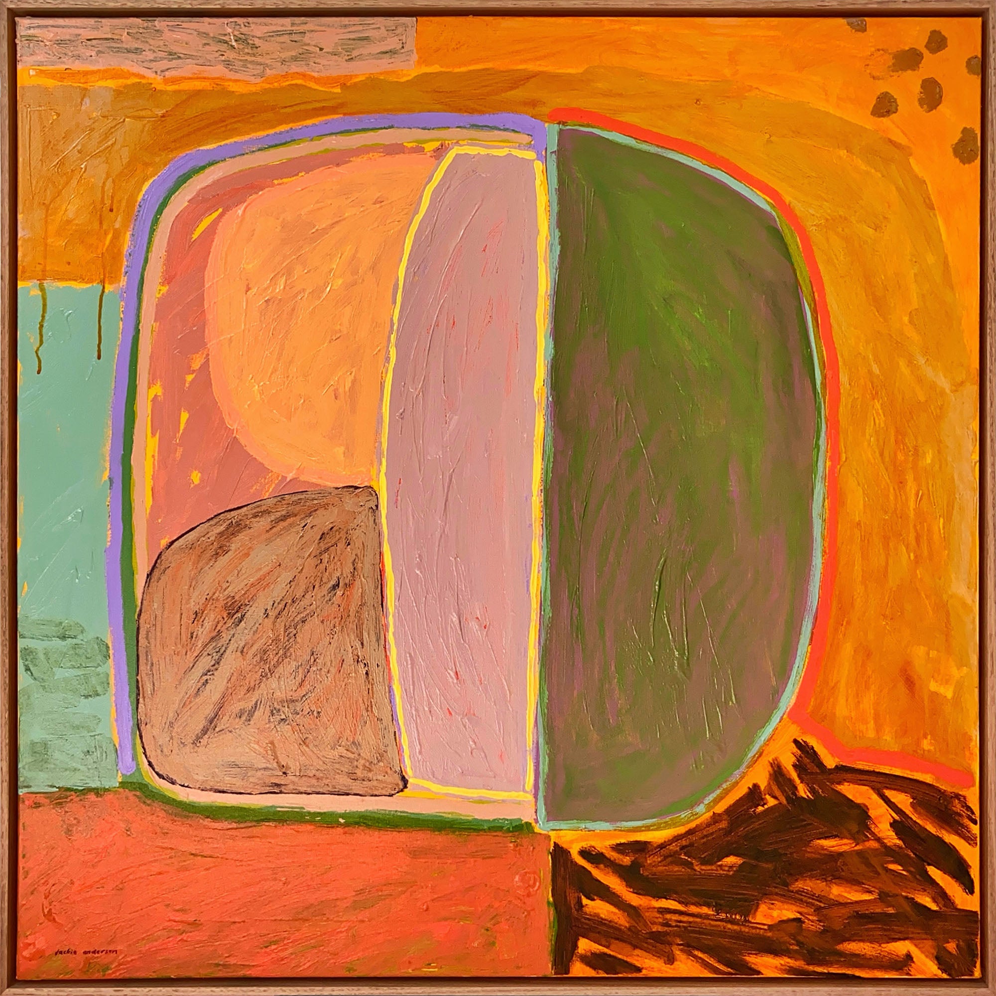 Acrylic on canvas, box framed in raw oak.